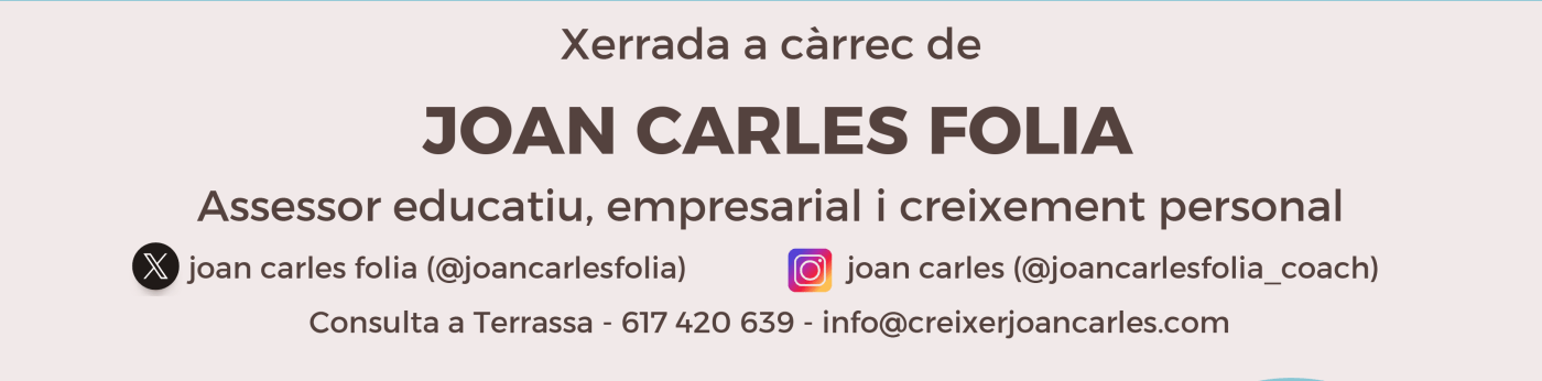 Estimades Famílies, El proper dimarts 12 de març a les 18:00, l'AMPA organitza una xerrada dirigida a totes les famílies de l’escola i, en especial, a les de cicle superior de Primària i ESO, a càrrec de Joan Carles Folia.... Seguir leyendo →